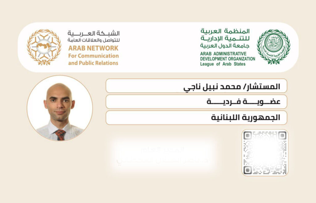 كما يتمتع بعضويات مهنية مرتبطة بالتطوير الإداري والعمل المؤسسي في العالم العربي، حيث يشغل صفة عضو في Arab Administrative Development Organization التابعة لـ League of Arab States، وهي إحدى المؤسسات الإقليمية المعنية بتطوير الإدارة وتعزيز الكفاءات المؤسسية في الدول العربية. ومن خلال هذه العضوية يهتم بالمبادرات المرتبطة بالتطوير الإداري وتعزيز التعاون الاقتصادي والإداري بين المؤسسات العربية.